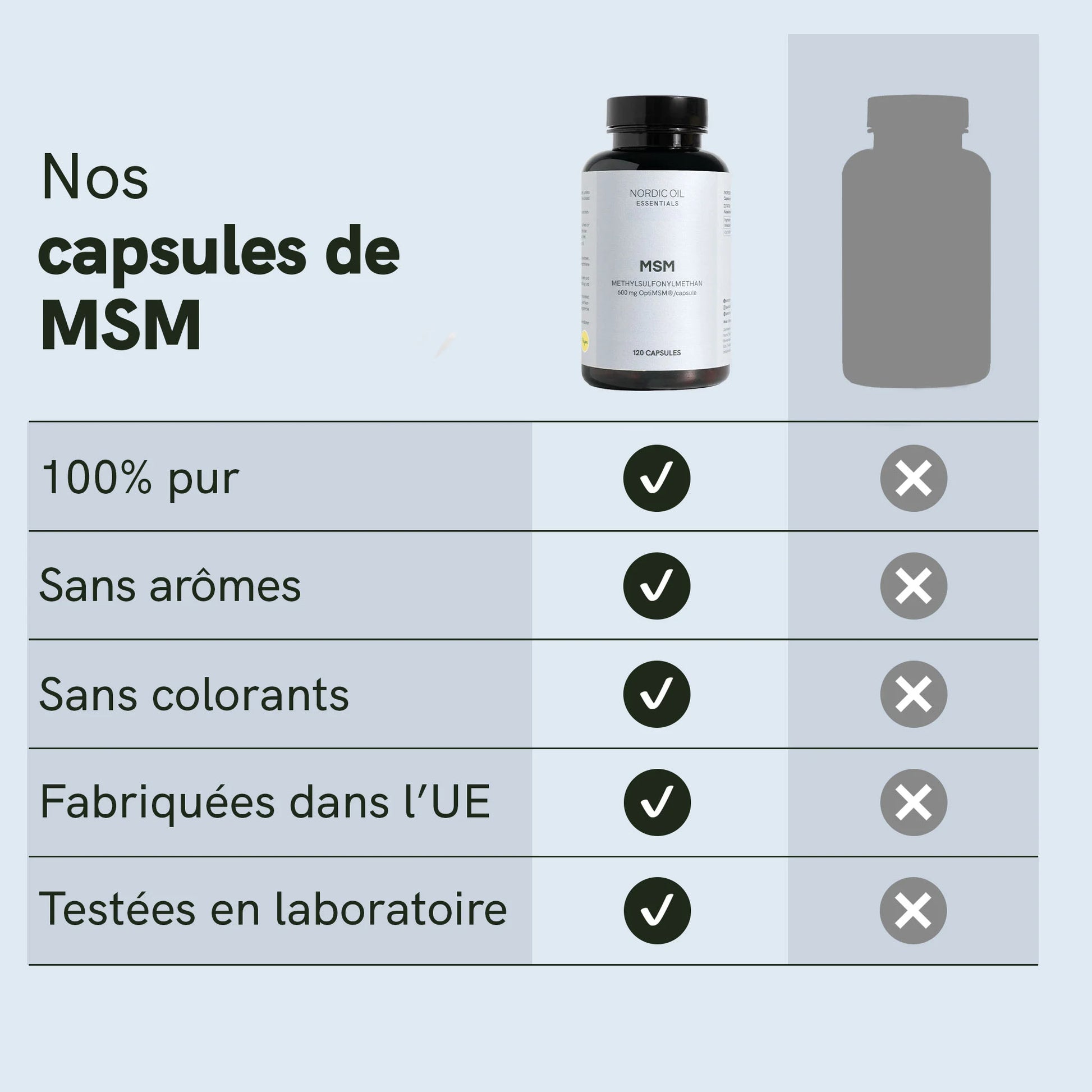 - 600 mg de MSM pur par capsule