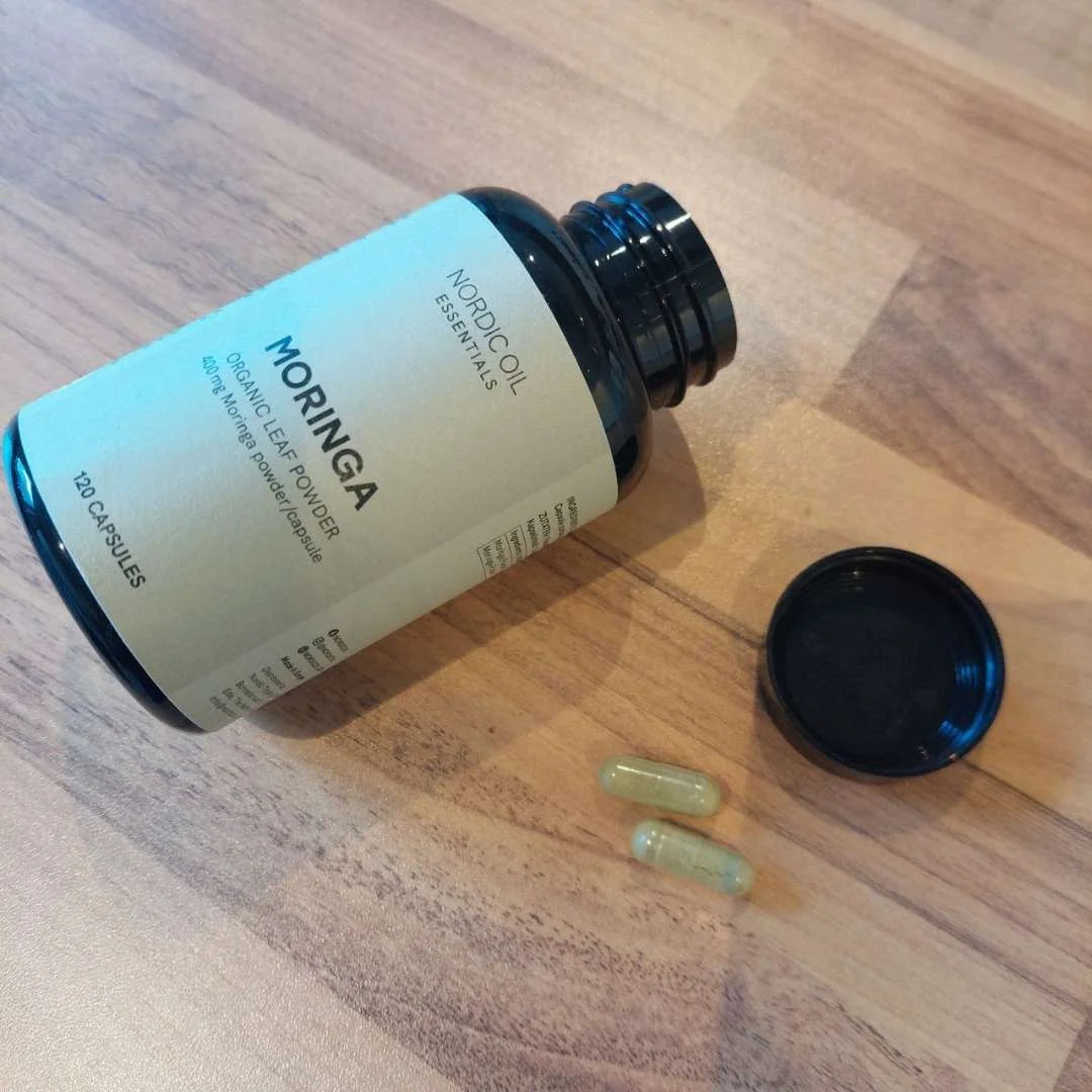 Fabriquées dans l'UE, nos capsules de Moringa sont végétaliennes, sans gluten, et exemptes de conservateurs, d’arômes ou de colorants artificiels. Testées en laboratoire pour garantir leur pureté et leur puissance, ces capsules représentent un choix excellent pour quiconque cherche un supplément à base de plantes, propre et fiable, destiné à optimiser sa routine de bien-être