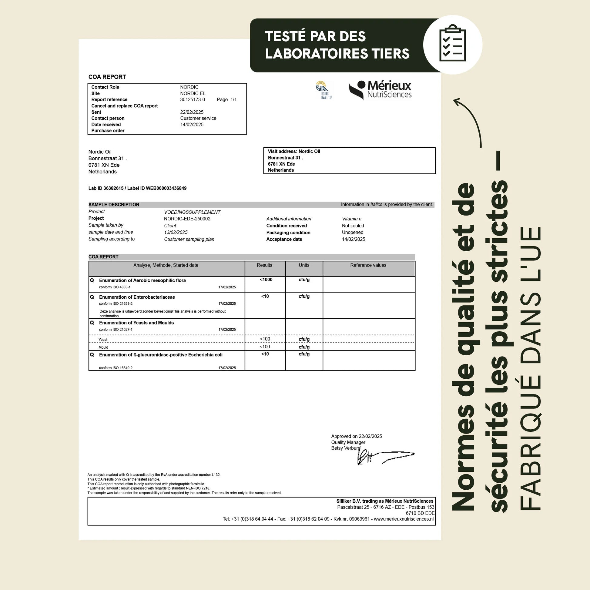 Conçues pour soutenir votre système immunitaire tout au long de l'année, ces capsules favorisent également la formation de collagène pour une peau, des os et des articulations sains, et contribuent à un métabolisme normal et au bon fonctionnement du système nerveux. Produites dans l'UE selon les normes de qualité les plus strictes, elles constituent un choix pur et fiable pour le bien-être général.