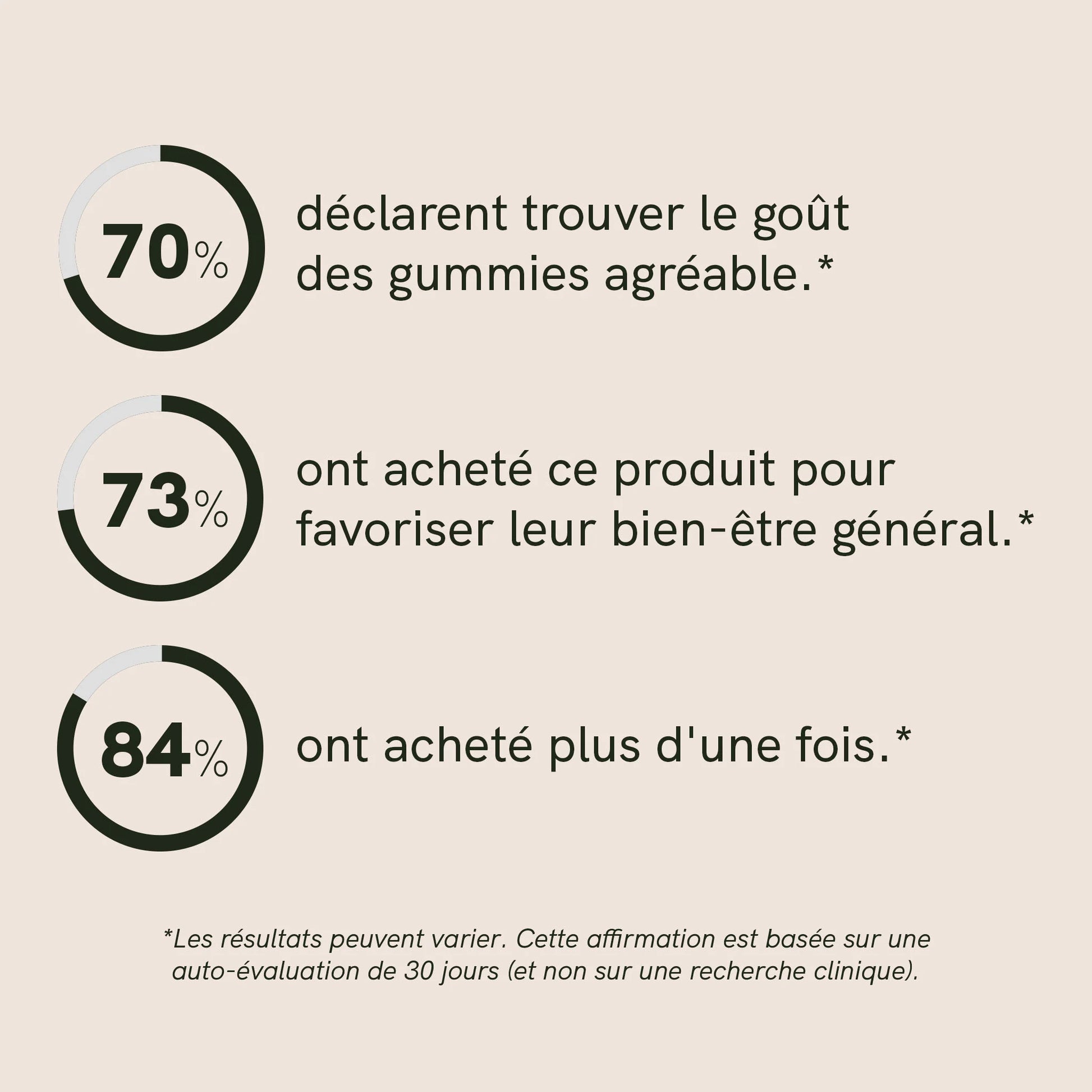 La réaction du corps est individuelle, c'est pourquoi les résultats de la prise de nos gummies aux champignons médicinaux peuvent varier d'une personne à l'autre. Certaines personnes remarquent un changement après seulement quelques jours, tandis que d’autres ne remarquent un changement qu’après quelques semaines d’utilisation régulière. Nous recommandons une prise régulière sur une période de 4 semaines.