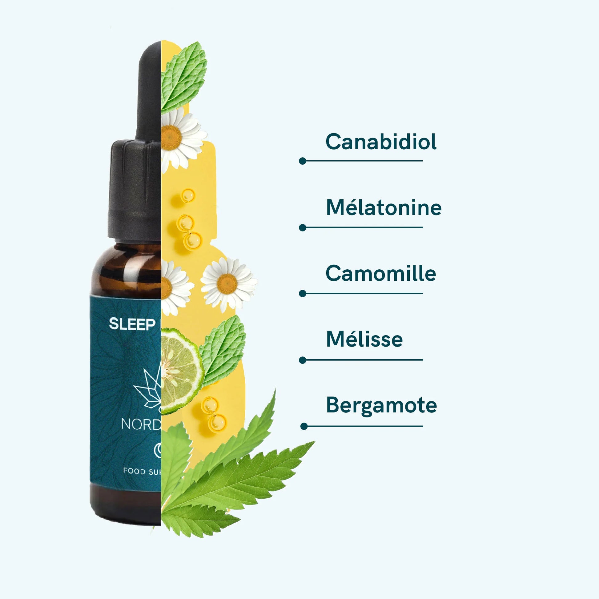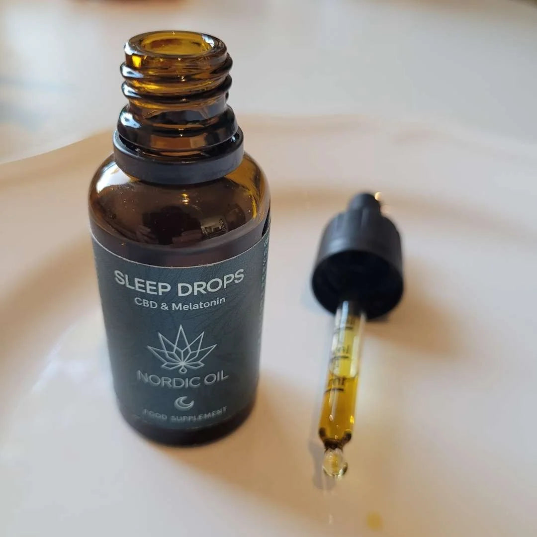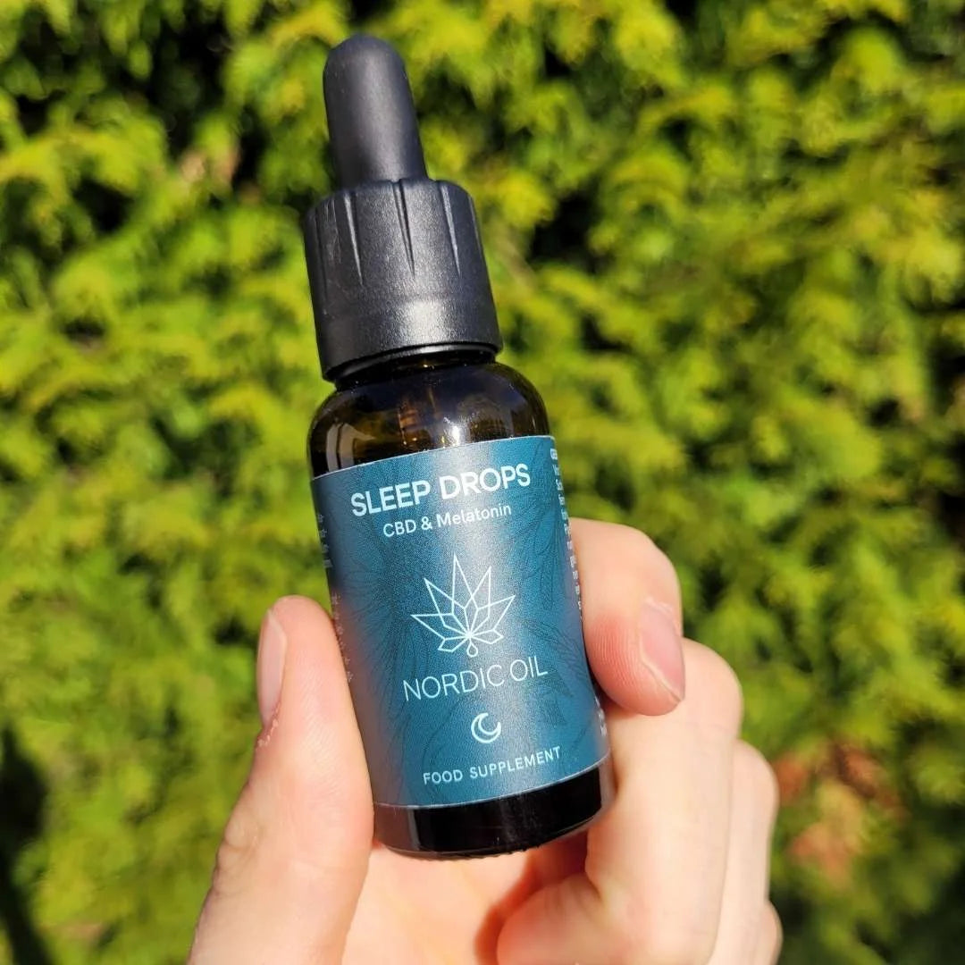 - Gouttes de sommeil CBD avec mélatonine, camomille, mélisse et bergamote