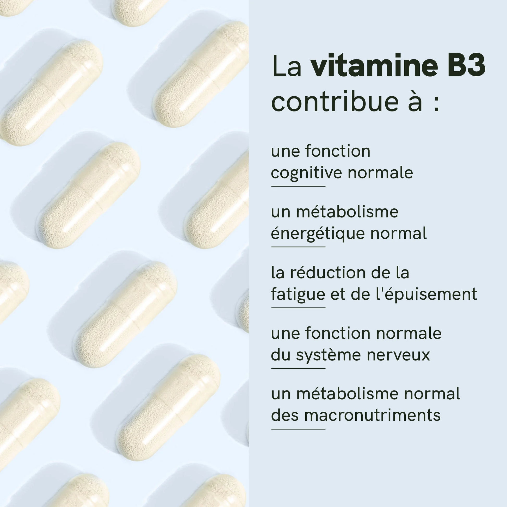 - La vitamine B3 contribue à la résilience mentale, à la concentration et à la réduction de la fatigue